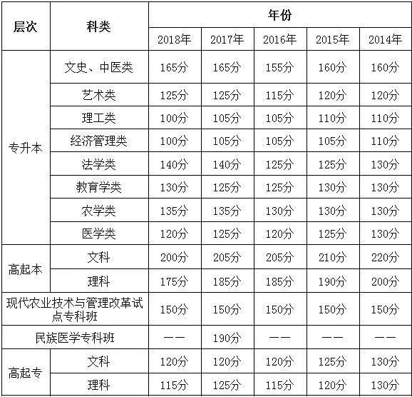 以下数据,是2014-2018年深圳深圳成考的录取线: