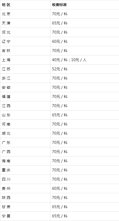 各地的教师资格证报名费用或多或少有所不同,这里职叔就以2019年上教师资格考试笔试的费用为准,如下所示。
